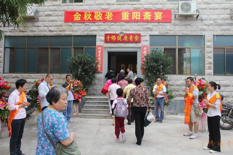 “百善孝为先”,今天是重阳节,作为中国的传统节日,九九重阳凝聚了中华民族千秋万代的浓浓深情和生生不息的民族风范。我寺今天举办“金秋敬老,和谐客都”为主题的素宴,本次活动席设斋宴45台,目的是让敬老爱老成为社会风尚,继承和发扬尊老敬老优良传统。