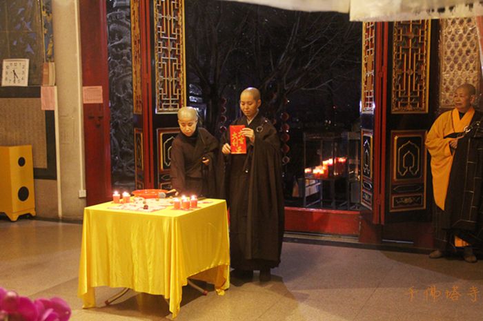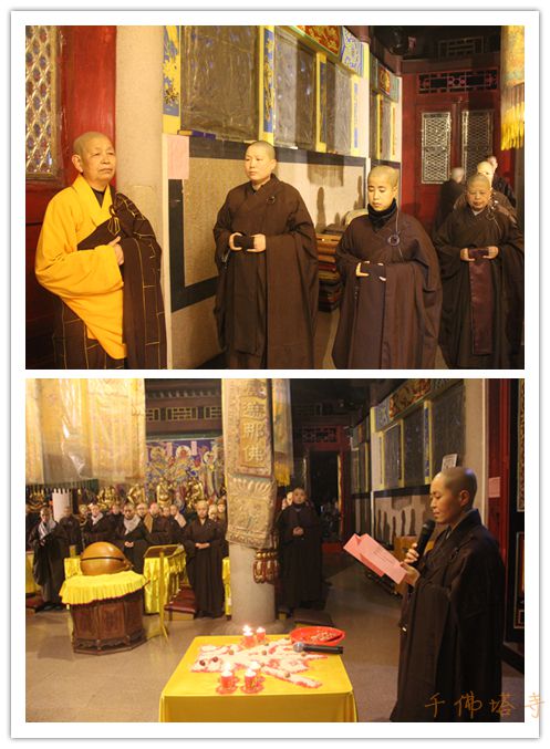 岁次乙未年正月十五日,千佛塔寺按照丛林规约,如法如律,在千佛宝殿隆重举行二零一五年执事请职仪式。早 4:25 分,千佛塔寺方丈 上 明 下 慧法师为四大班首、八大执事依次送位。方丈和尚鼓励新一届的班首执事,发起广大的菩提心,为常住服务,恪守职责,各司其职,兴隆道场,利益众生。班首执事也纷纷表示要秉承佛陀教诲,以祖师为榜样,以戒律为准绳,以常住为依靠,做好自己的本分事,在各自的岗位上为常住尽心尽力。千佛塔寺 15 位班首执事参加了此次仪式,大众精神振奋,法喜充满。