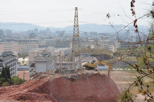 正在拆除观音亭(上图)